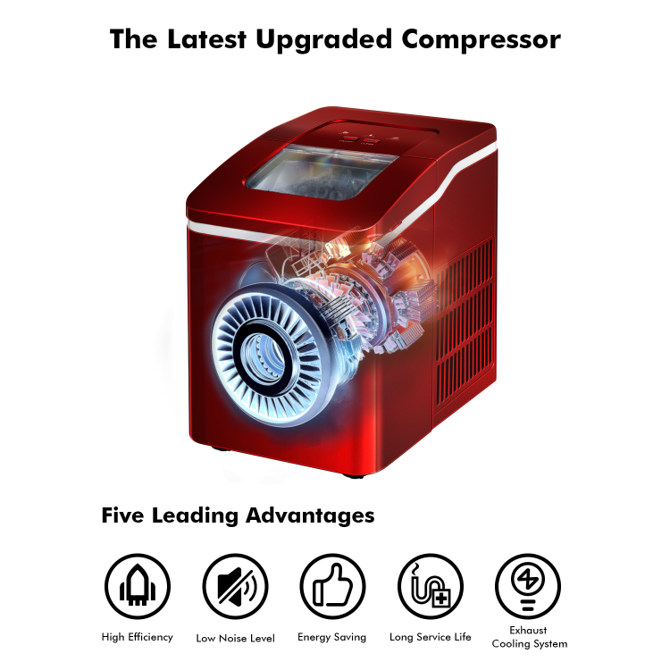 Efficient Ice Maker: Produces 9 bullet-shaped ice cubes in just 8 minutes and up to 26 lbs of ice per day—ideal for drinks, food prep, and entertaining.