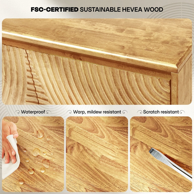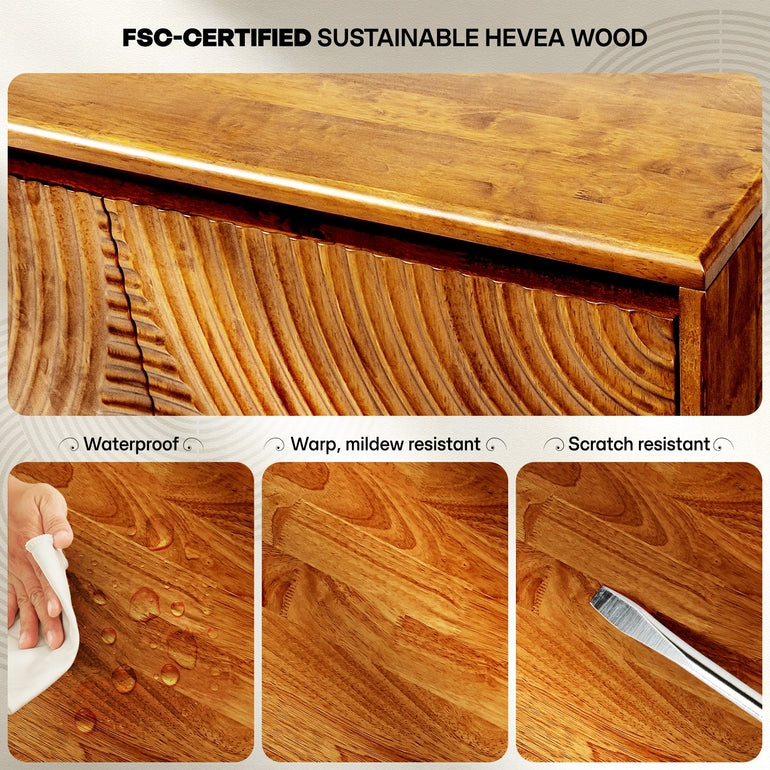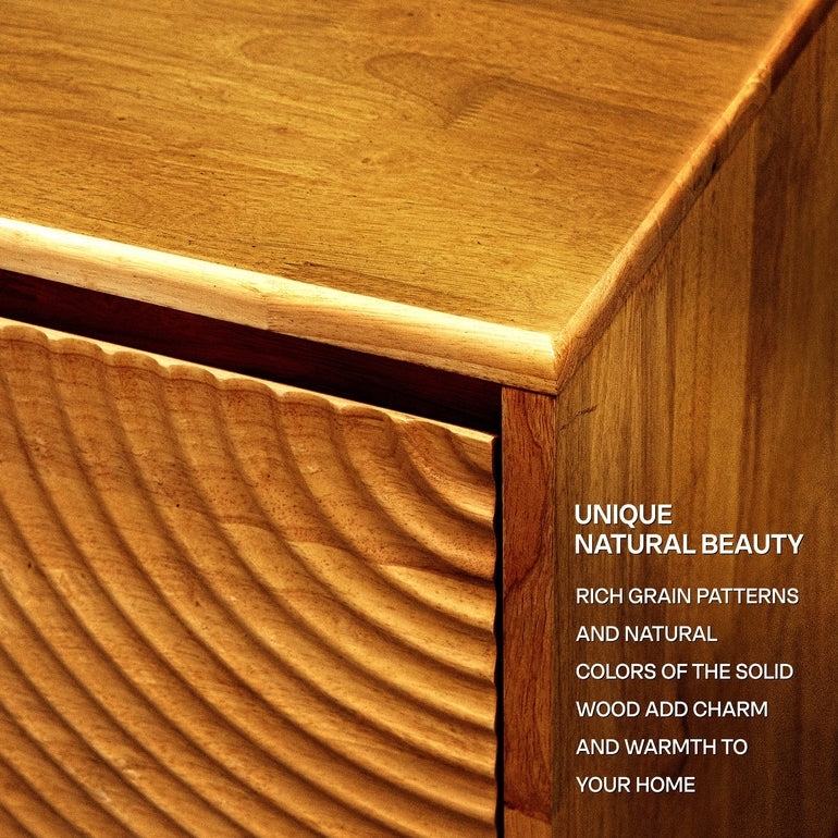 The acacia wood used in the Harmony TV Stand with Storage is known for its rich color and beautiful grain patterns. This means that each unit is unique, ensuring your stand is one-of-a-kind. It's not only a functional piece but a stunning work of art that seamlessly blends into various decor styles—be it contemporary, rustic, or industrial.