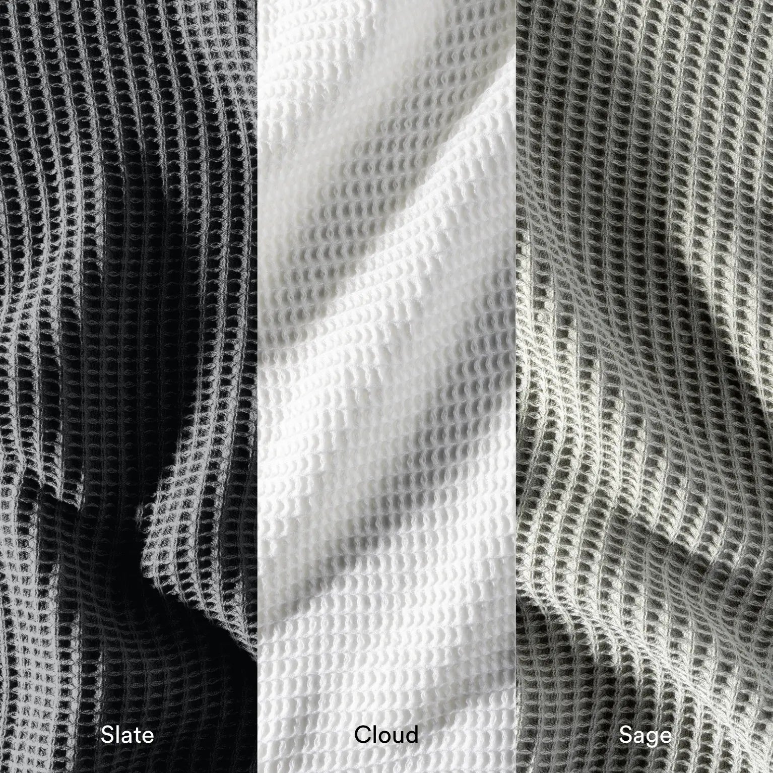 Our CleanBamboo® waffle blanket fabric is cozy and weighted, providing the perfect balance to keep you at just the right temperature. Made responsibly from regenerative organic bamboo, it offers a perfect blend of comfort and sustainability. Enjoy the soothing weight and warmth, wrapped in blissful, responsibly sourced comfort.