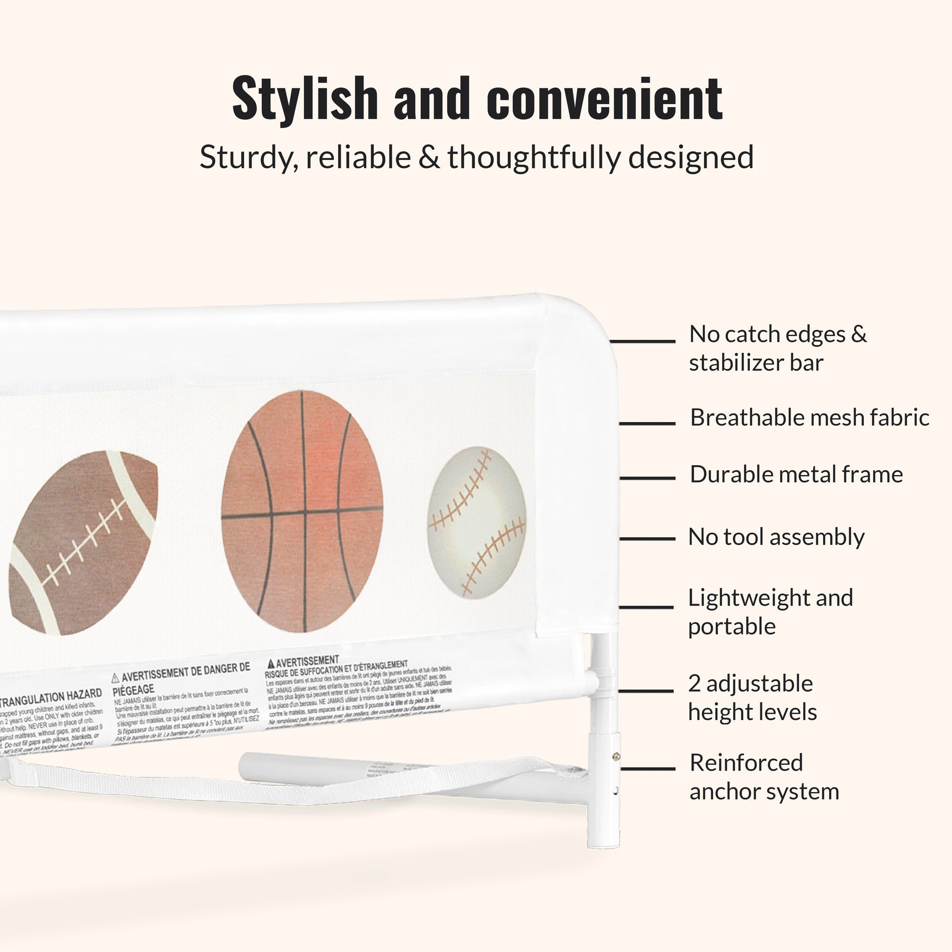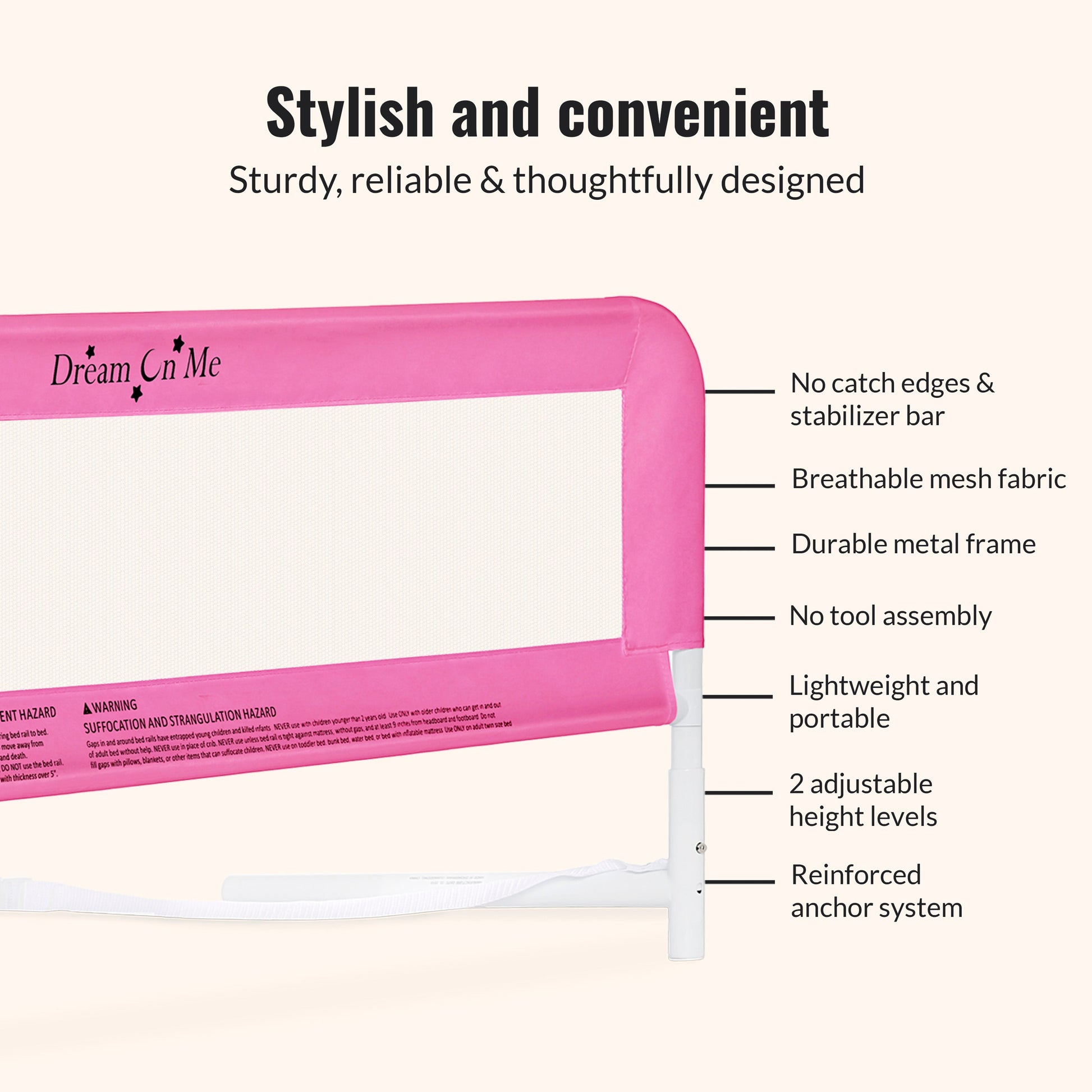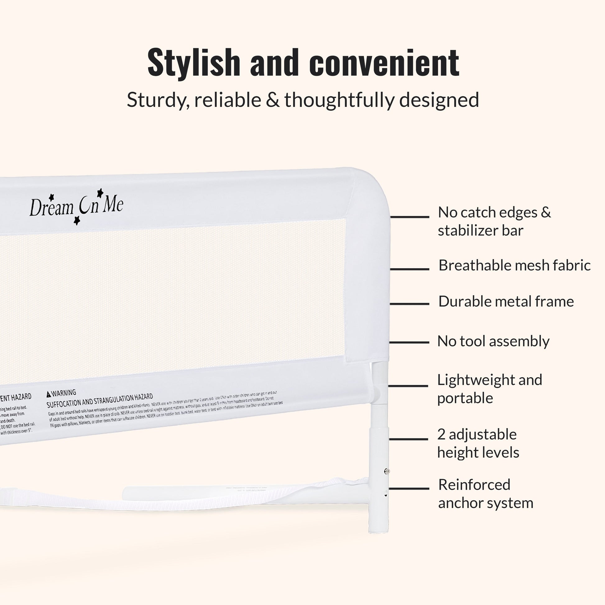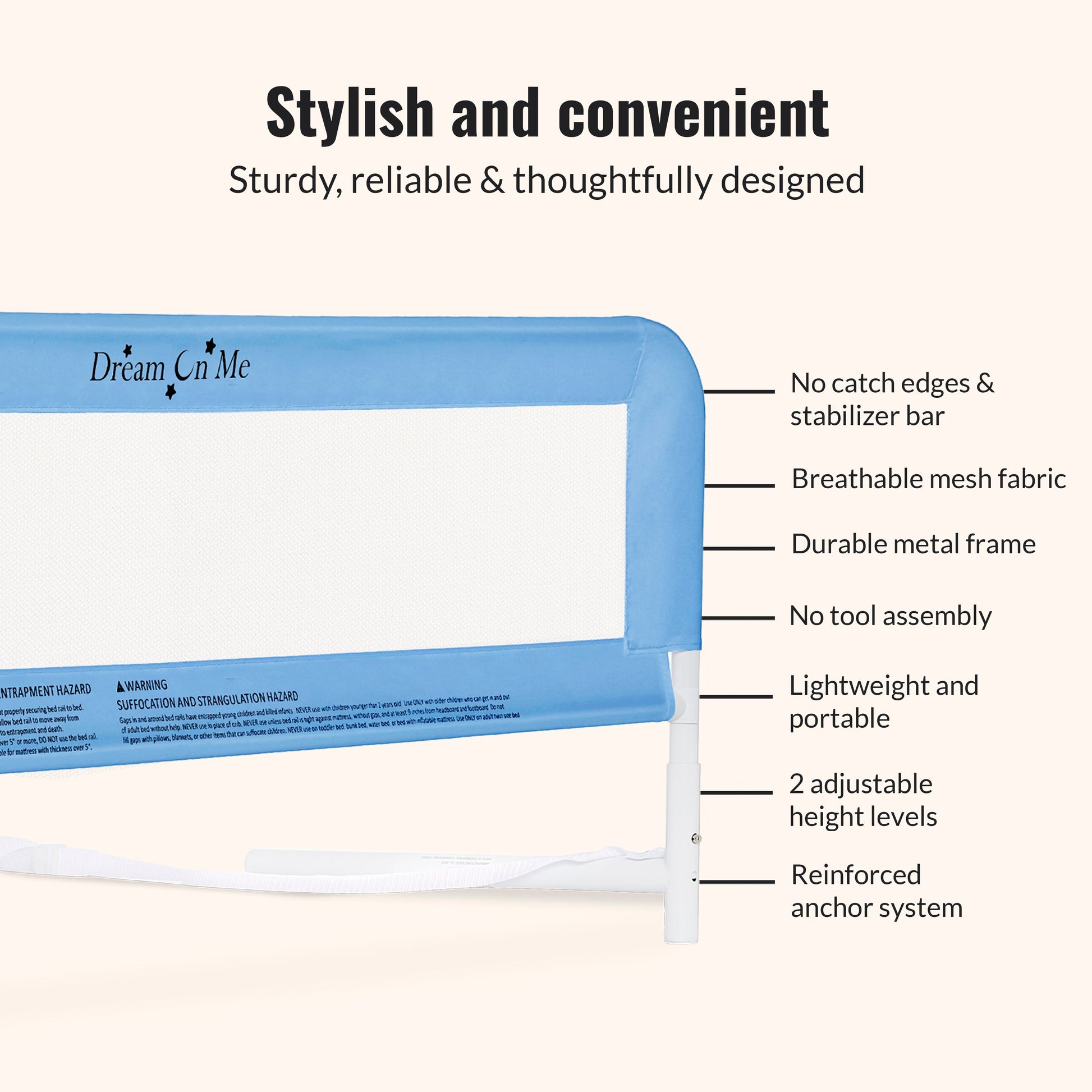 Keep little sleepers safe and sound with the Dream On Me Adjustable Mesh Bed Rail—designed to support your toddler’s big-kid transition with confidence and care.