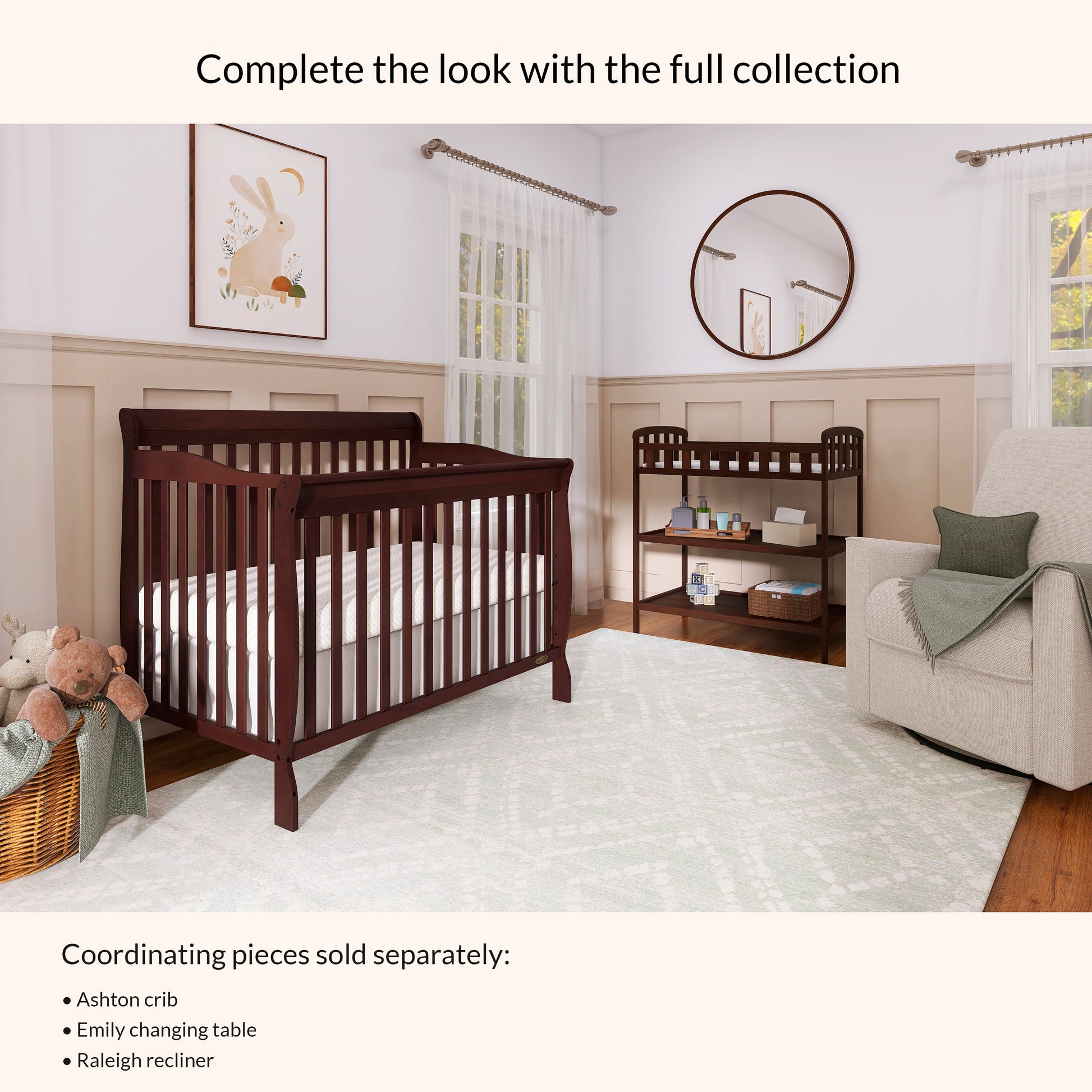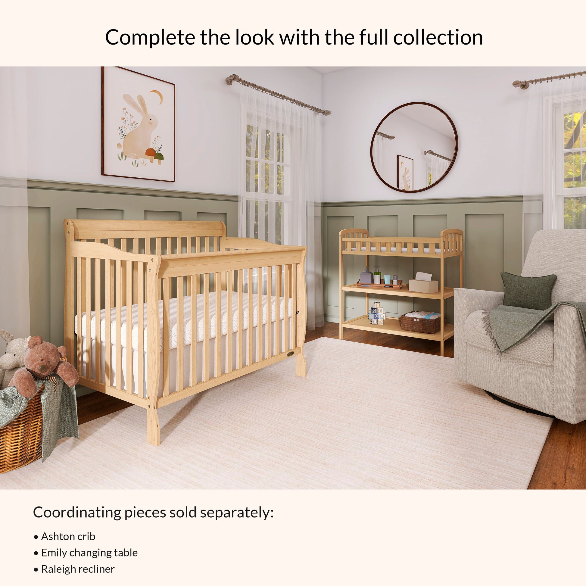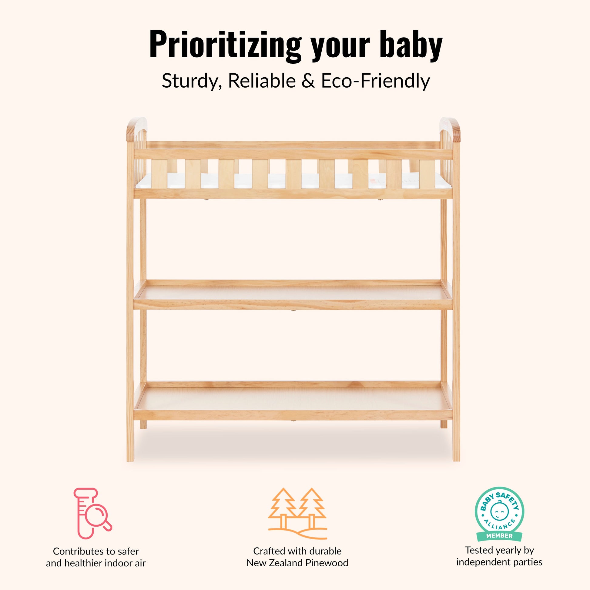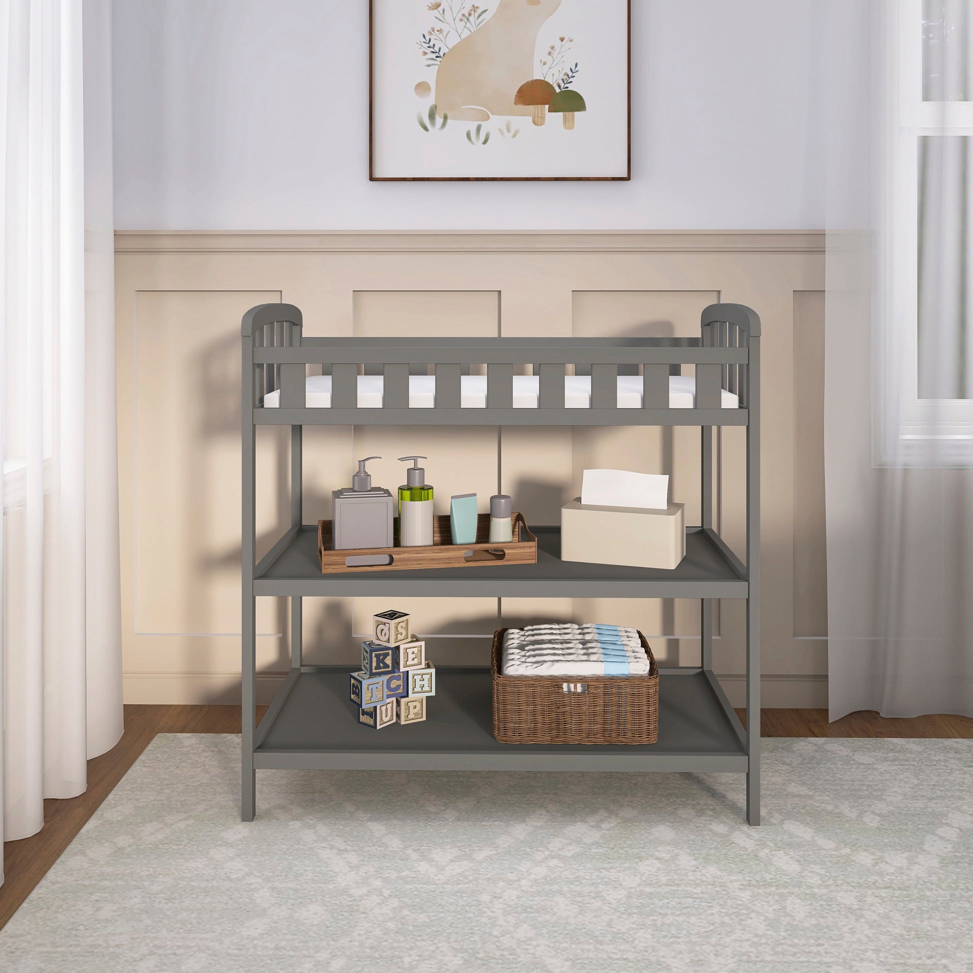 A nursery essential—made beautifully compact. The Dream On Me Emily Changing Table combines smart design with timeless style to give parents a secure, convenient place for diaper changes. Lightweight and easy to move, it features a sturdy build, two spacious shelves for baby’s must-haves, and a 1" pad for comfort. With safety rails on all four sides and a range of elegant, non-toxic finishes, Emily makes changing time a breeze—anywhere in your home.