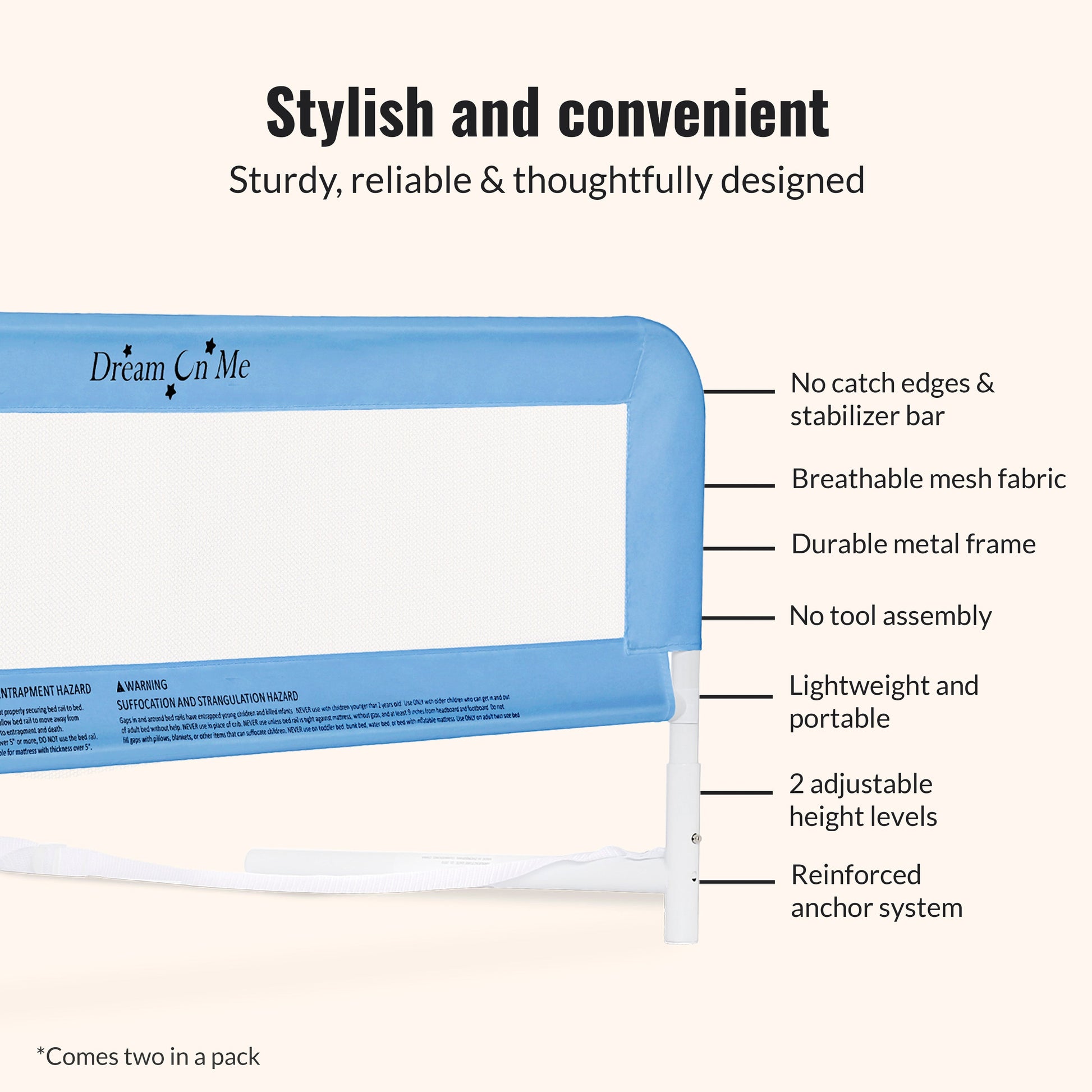 Ensure your child's safety during bed transitions with the Dream On Me Mesh Security Bed Rail. Easy installation, lightweight, and features breathable mesh fabric for comfort.