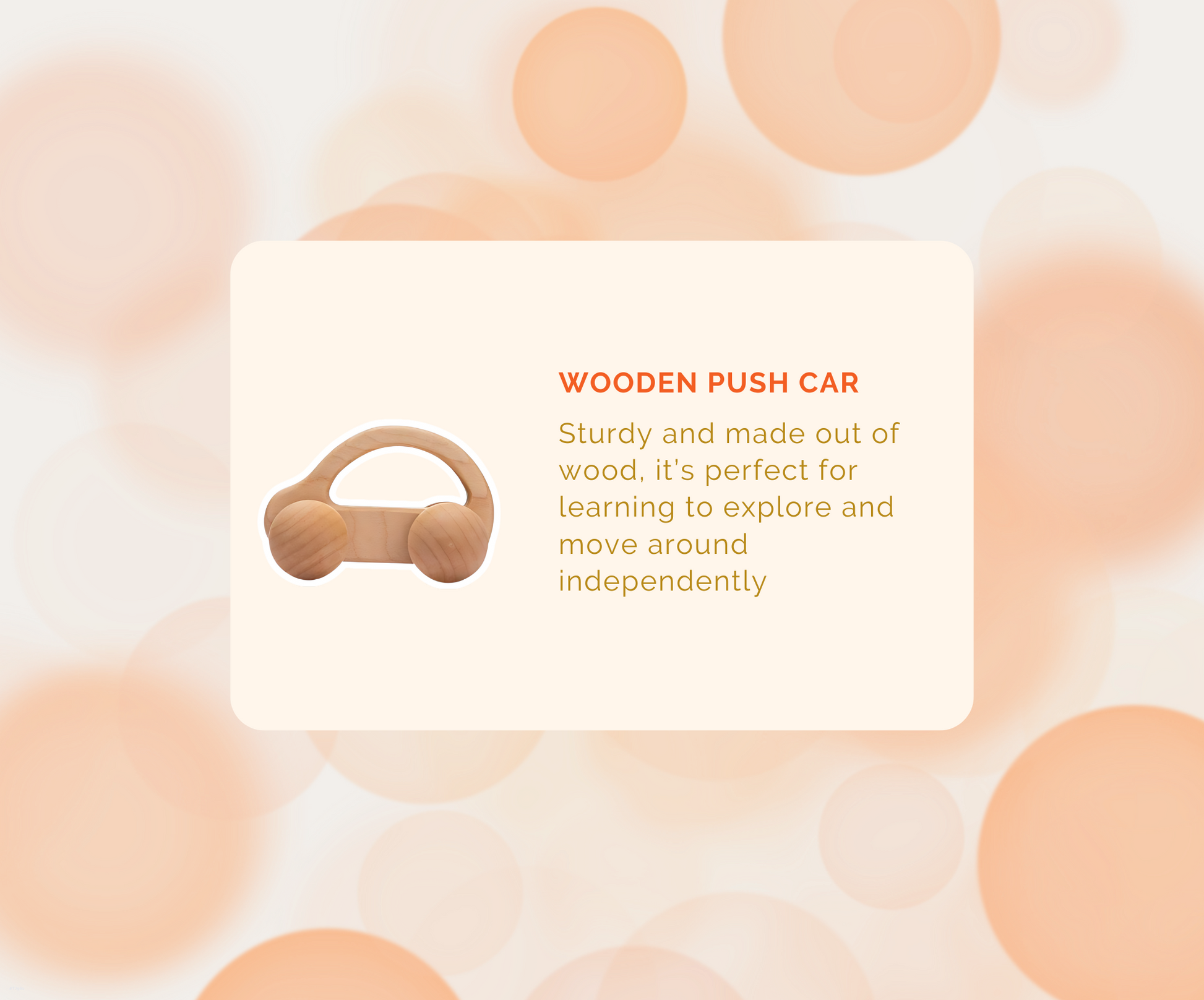 Educational box for babies aged 25-27 months, full of developmental items to aid baby in their cognitive growth. Each box comes with 6 products, all products are made from sustainable and safe material. These boxes encourage open ended play while helping to strength fine motor skills.