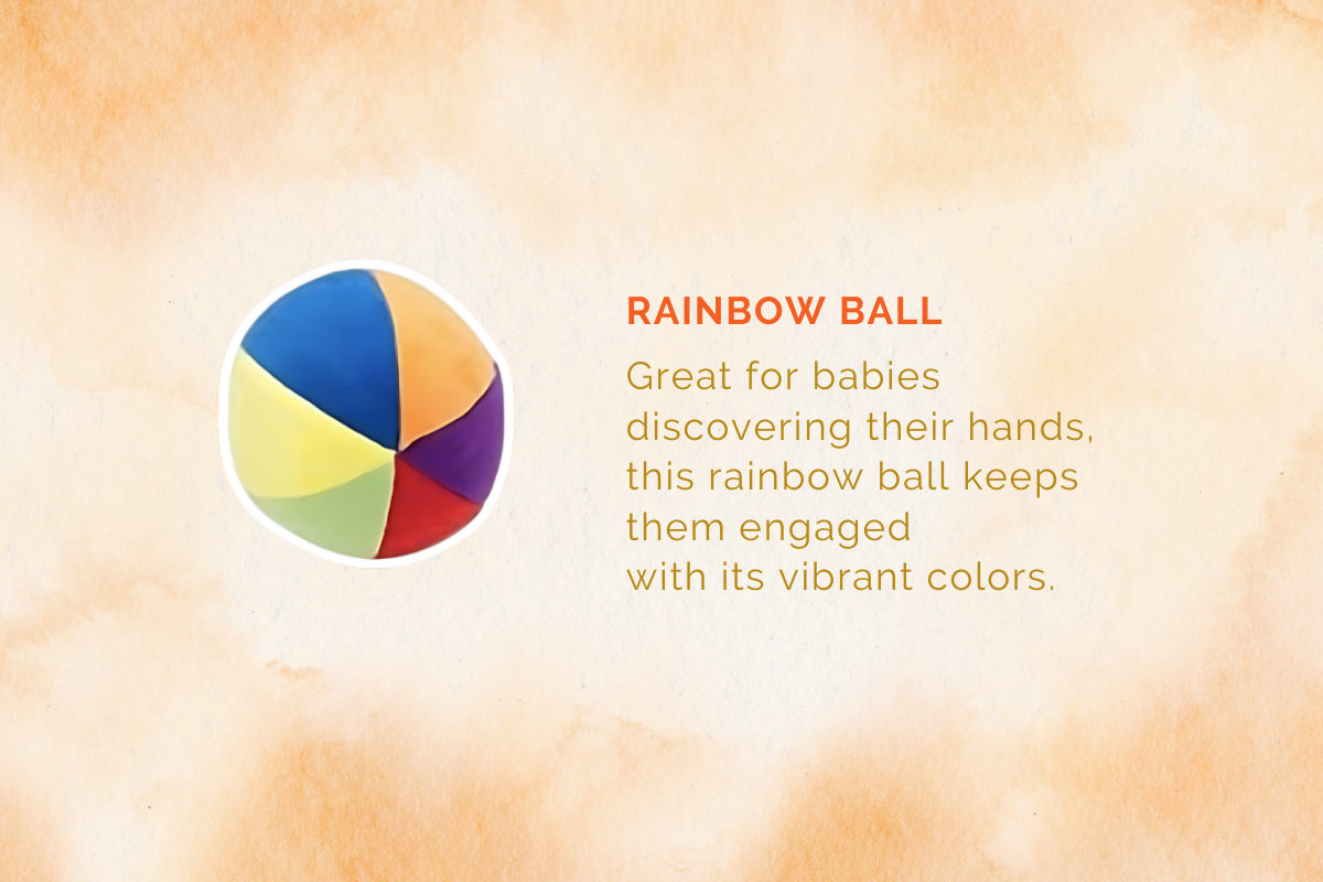 Educational box for babies aged 5-6 months, full of developmental items to aid baby in their cognitive growth. Each box comes with 6 products, all products are made from sustainable and safe material. These boxes encourage open ended play while helping to strength fine motor skills.