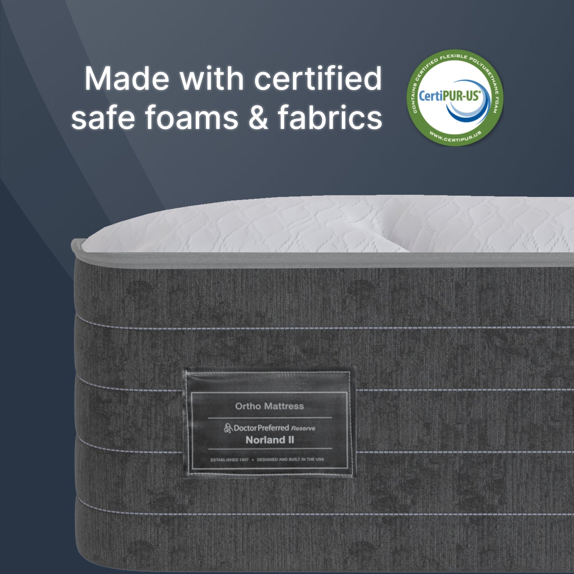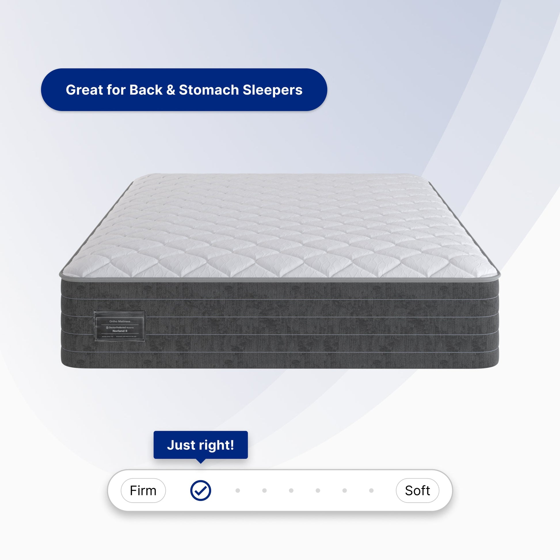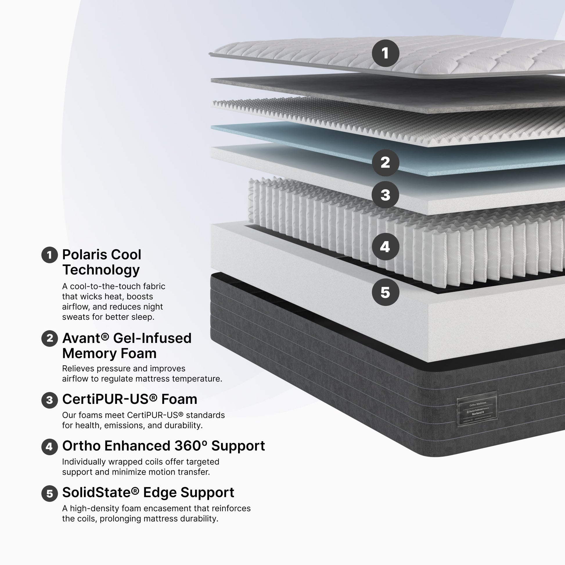 The Norland II Extra Firm features a new cooling cover, Polaris Cool, to ensure a refreshing and temperature balanced sleep. In addition, the Norland II is packed with Gel Memory foam that contours to the body with precision. Enhanced 360° Offset Support and Solidstate Edge Support is found in the core to relieving pressure points and provides superior durability.
