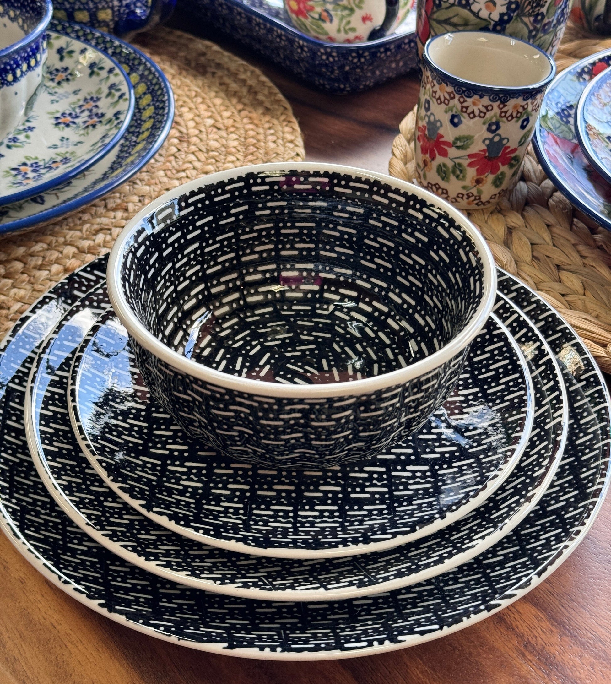 Handcrafted in the heart of Boleslawiec, Poland, by the skilled artisans of Manufaktura, each plate is a testament to a rich heritage of pottery-making that dates back to the early 18th century. Utilizing the age-old "punching" technique of hand stamping, these artisans breathe life into the clay, transforming it into functional art. The "Metro" pattern belongs to the Traditional level of artistry, the most recognizable and beloved style worldwide. Due to its popularity, you might notice slight variations from one piece to another, adding a unique charm that only handmade items possess. Whether it’s a casual breakfast or a formal dinner, these plates are designed to impress, blending durability with elegance.
