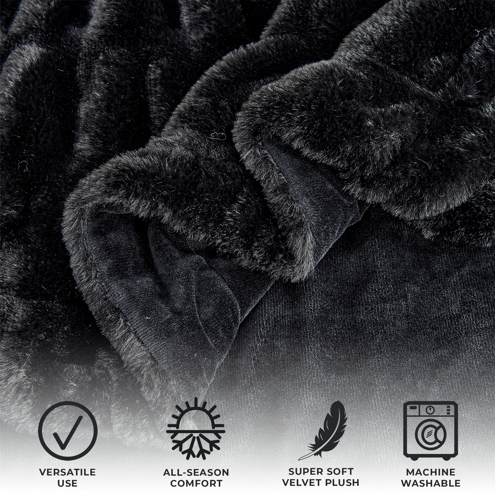 These throw blankets are made of animal-friendly faux fur for ultimate comfort and an elegant look. The ruched design creates a unique texture that is perfect for a decorative throw. With a super soft microfiber reverse, you'll get two looks in one throw. This expertly designed thick throw blanket is soft to the touch and will keep you comfortable throughout every season.