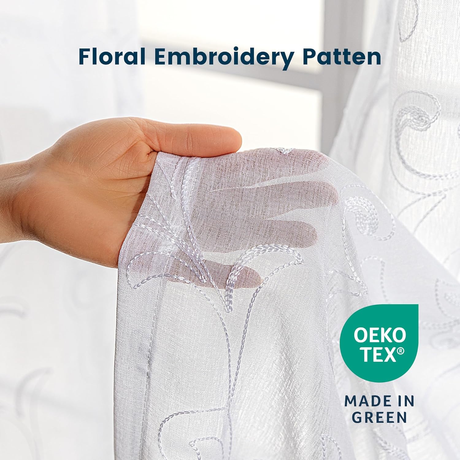 - Pattern Design: Featuring a delicate white tulle combined with an intricate floral embroidery pattern, these farmhouse-style curtains offer a simple yet elegant look. Perfect for a variety of spaces including the living room, bedroom, girls' room, kitchen, balcony, or any area you choose, adding both style and charm to your home decor