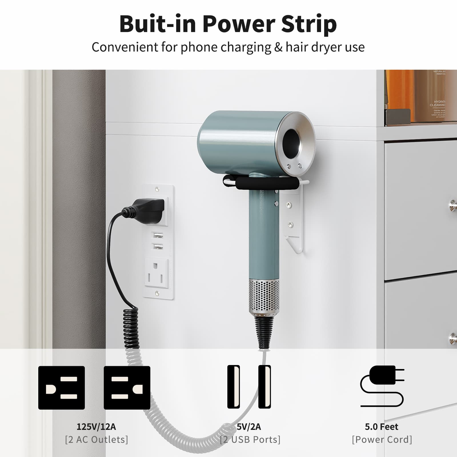 - Built-in Power Station: This vanity desk includes a built-in hair dryer stand and a charging station with 2 AC outlets and 2 USB ports. Easily charge your phone, tablet, or plug in styling tools like hair dryers and curling irons—no more messy cords!